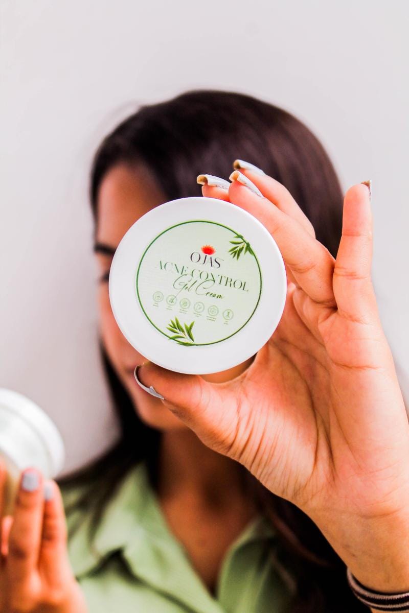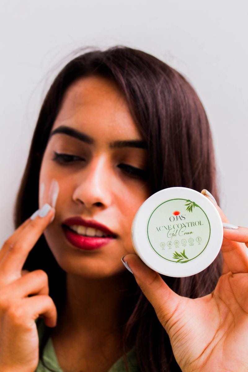 Take a Small Amount of Ojas Acne Control Gel Cream & Apply itafter face wash, toner and serum to the whole face including neck | Apply in Circular movements