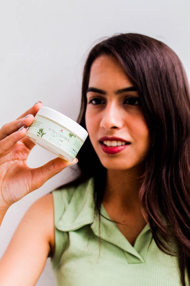 Experience the potent Acne Control Gel Cream, a powerful blend of aqua, hyaluronic acid, and natural extracts. Formulated with tea tree, mint, rosemary, white willow bark, neem, calendula, and cinnamon bark extracts, it combats acne and promotes clear skin. Infused with zinc PCA, grapeseed oil, wheat protein, and niacinamide, it balances and nourishes the skin. Enhanced with Sepimax zen for a lightweight feel. This dermatologist-tested gel cream includes FDA approved fragrance oil for a refreshing and invigorating skincare experience.