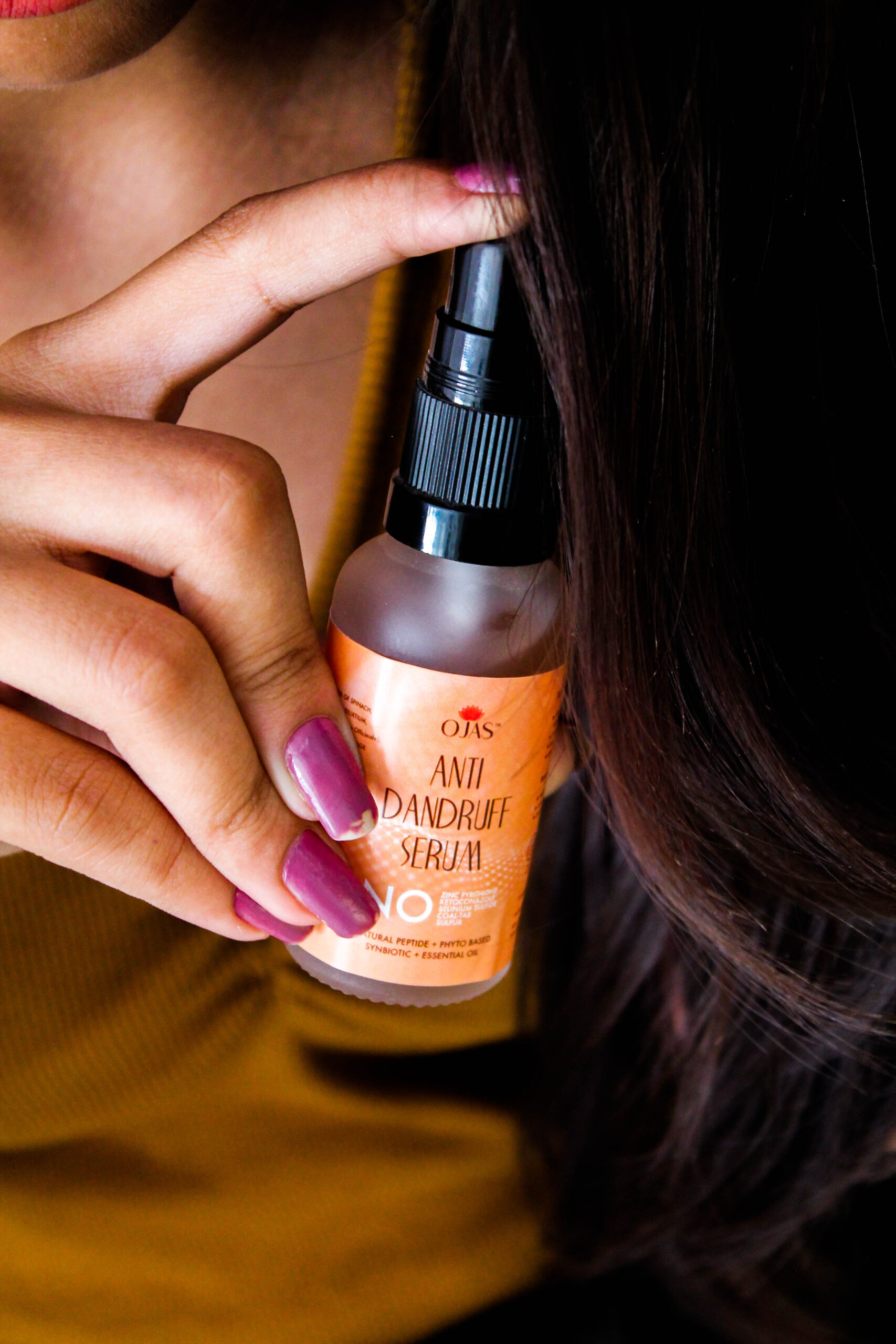Apply a few drops of Ojas Anti Dandruff serum alternatenights before going to bed | Leave it OvernightWash the scalp in the morning | Use it over a period of 1 month for transformative results