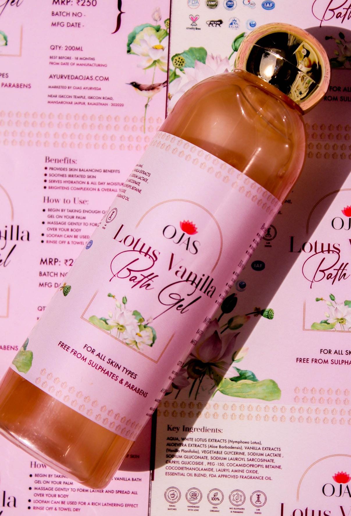 Ojas luxurious Lotus Vanilla Bath Gel, a sensory delight that transports you to a tranquil oasis of relaxation and indulgence. Immerse yourself in the captivating aroma of delicate lotus blossoms combined with the warm and comforting essence of sweet vanilla. This exquisite fusion of scents creates a truly enchanting bathing experience that rejuvenates both your body and mind.