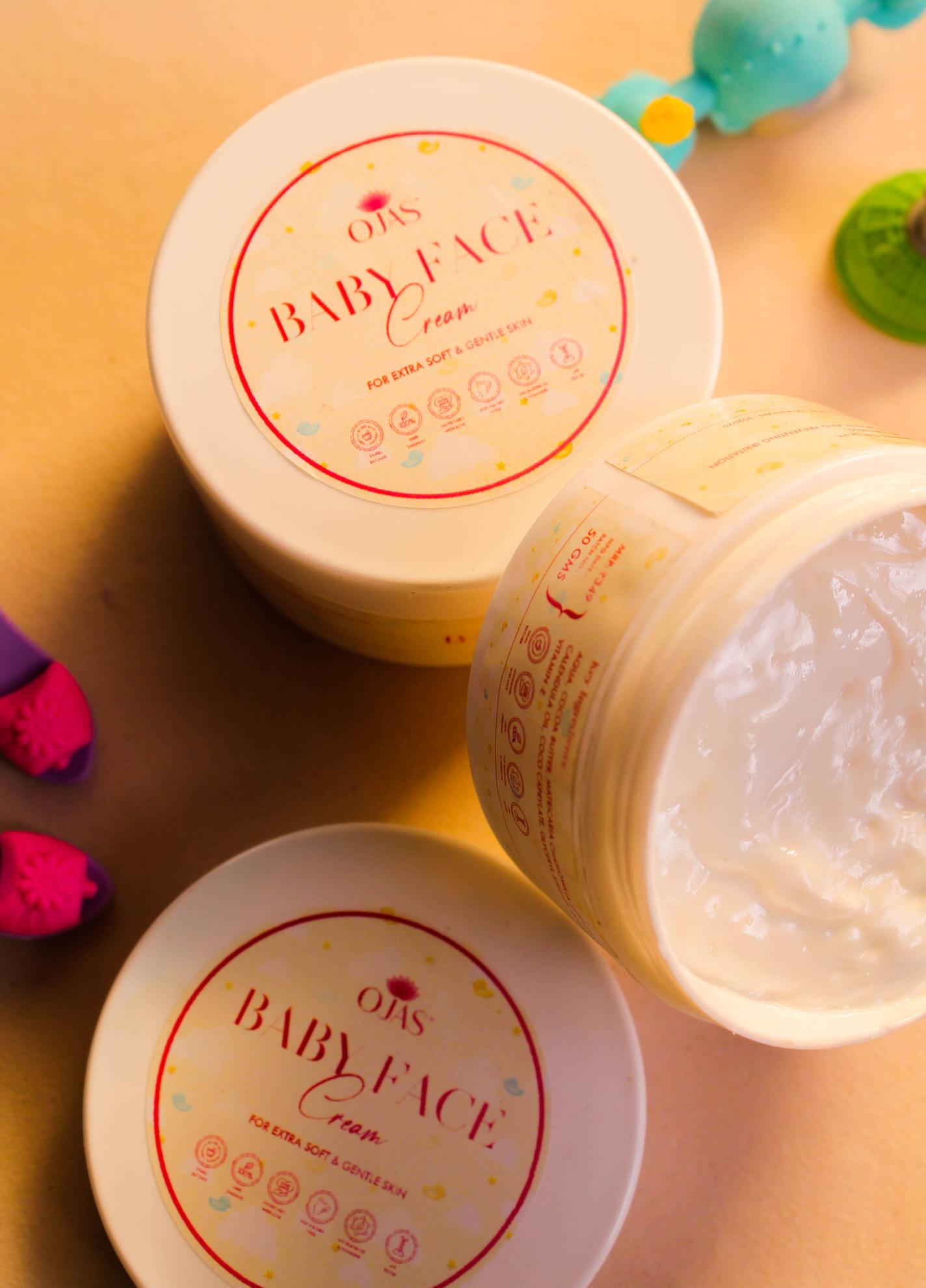 Take a Small Amount of Ojas baby face Cream on your palm | Apply it all over baby’s face & neckmassage in a gentle upward | Apply in Circular movements