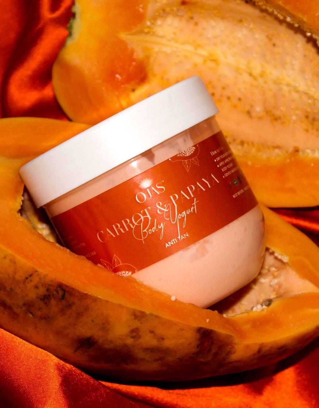 Dry Your body After Bathing |Apply Appropriate amount of Ojas carrot & papayaBody Yogurt |Gently massage in circular motion to help absorb faster