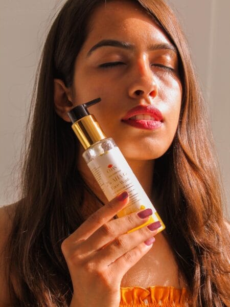 A natural ayurvedic blend of turmeric, sandalwood, multani mitti, gram flour, neem, and herbal extracts.