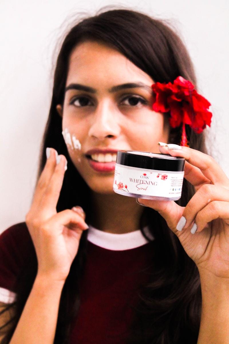 Cleanse your face with water, Take a dime size ofscrub on finger tips, and apply it all over the faceScrub gently for a few seconds. | Rinse it off andfinish off with the moisturizer.