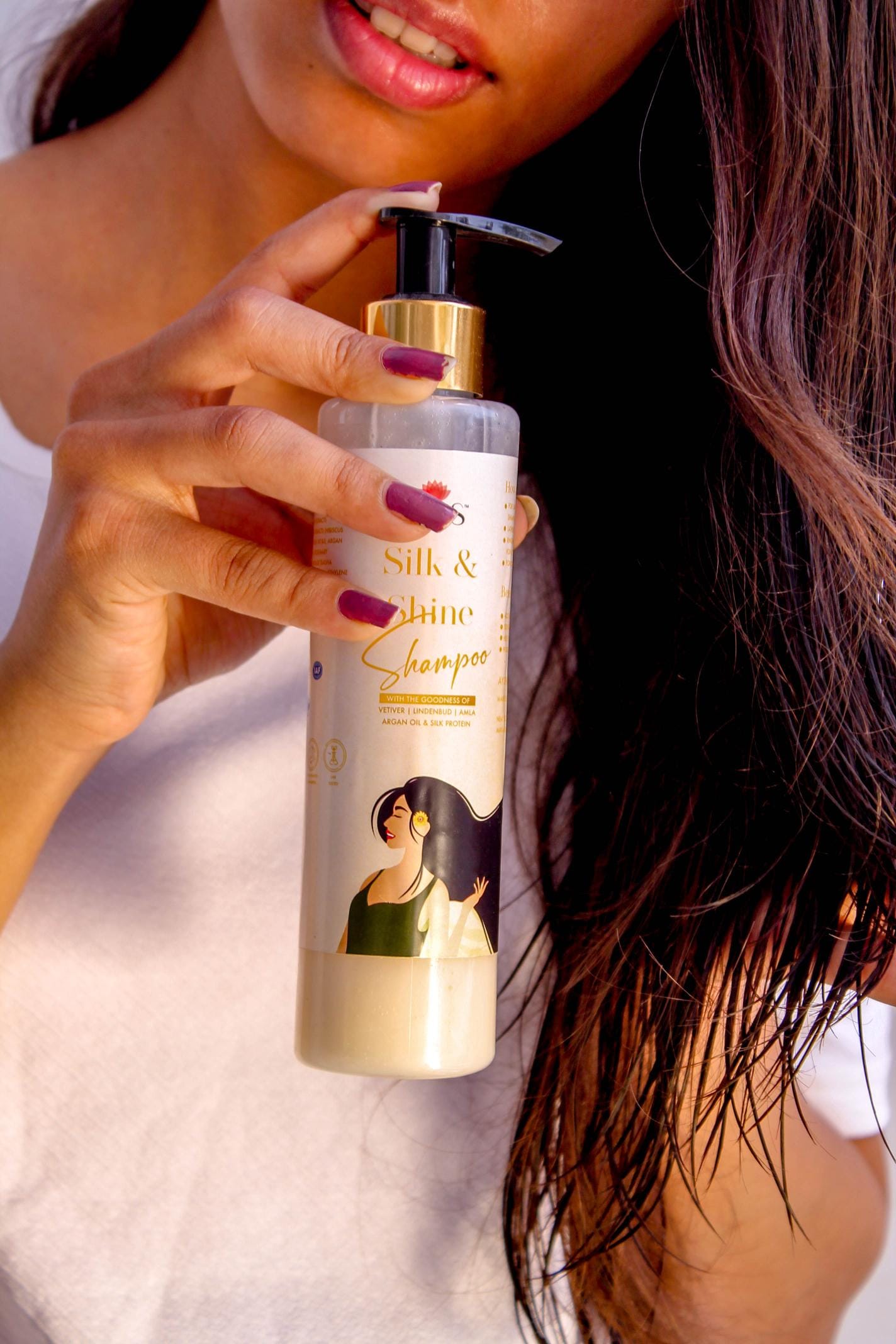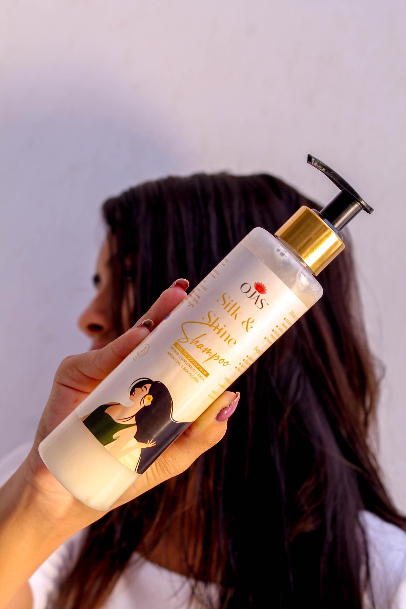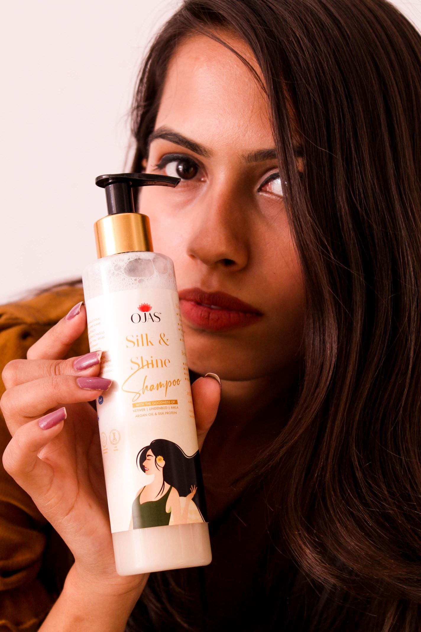 For silky and shiny hair, apply Ojas Silk & ShineShampoo to your scalp| lather it up & work it through your hair | Rinse well & use Ojas Silk & Shine Conditionerfor better results| For External use only